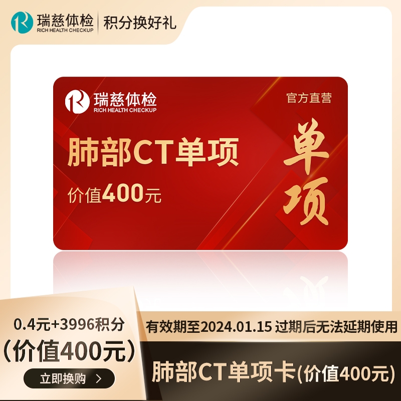 (积分)肺部ct单项卡(价值400元) 有效期至2024.01.29,过期后无法延期使用