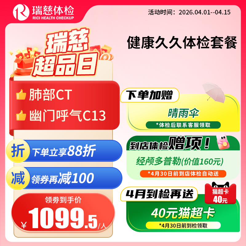 核心项目:肺部CT、肝功能7项、心血管检查、幽门呼气检查、肿瘤筛查等等,特别赠送大便常规+便隐血检测