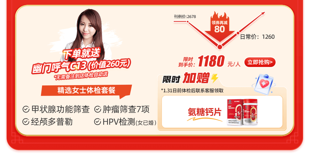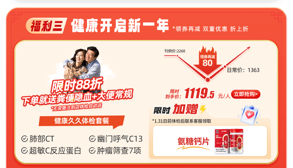 3. 活动期间购买【臻爱爸妈体检升级版套餐】可享受第二件半价活动,具体请以商品详情页为准;