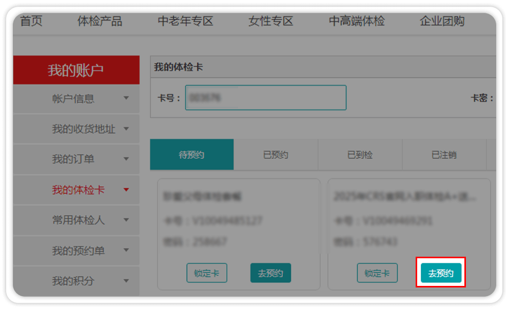 5、预约体检,点击【去预约】