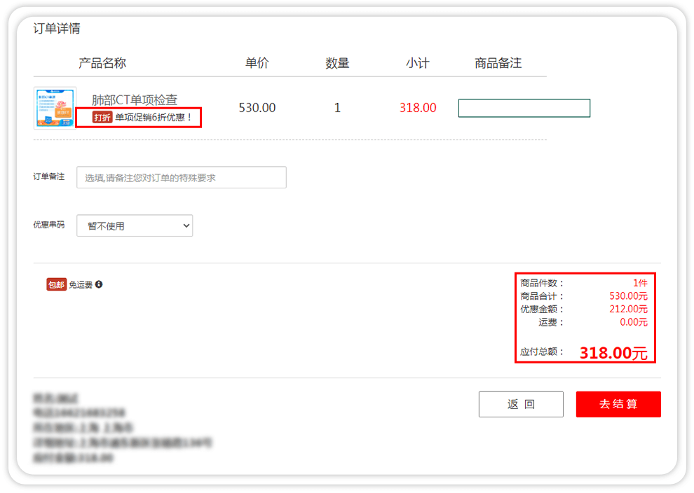 12、如有加项项目,预约成功后可点击加项支付在线完成付款,也可以体检当天门店现场支付。体检当天请凭借身份证及预约短信到店体检。(如有实体卡请携带实体卡)